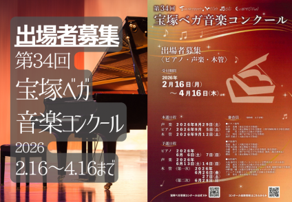 【出場者募集】第34回宝塚ベガ音楽コンクール(2.16〜4.16まで)
