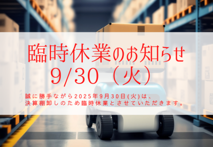 棚卸しに伴う臨時休業のお知らせ(9.30 火)