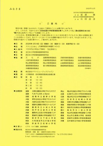 2026全国小学校 管楽器合奏フェスティバル(第43回西日本大会)