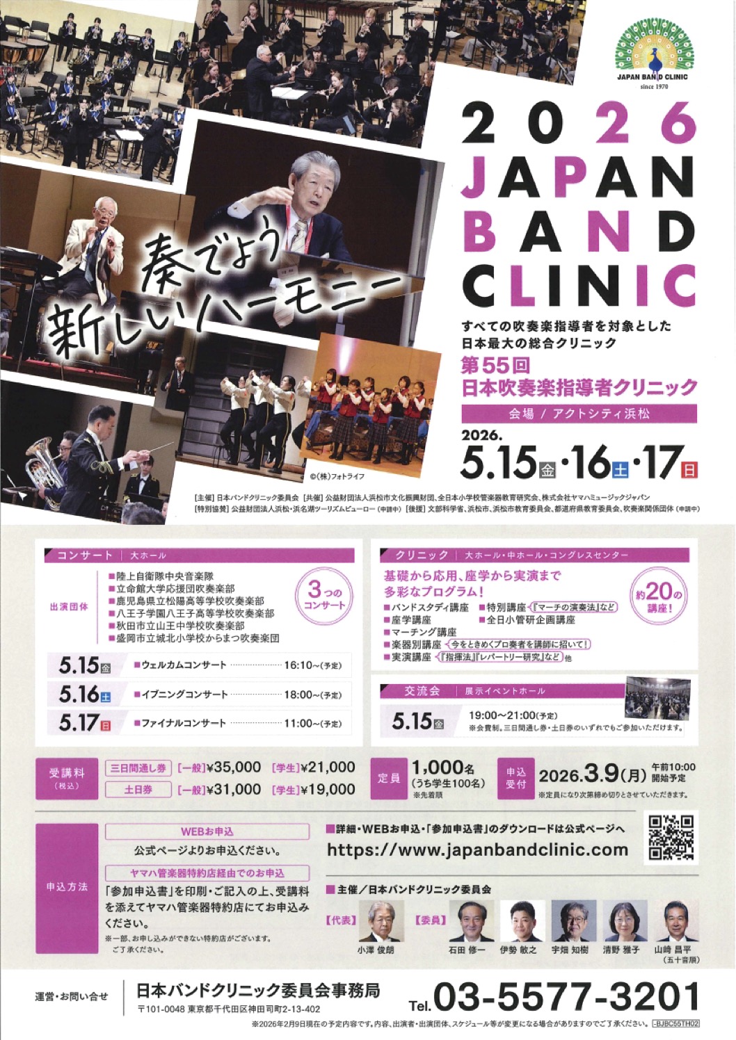 ◇◆ 2026 JAPAN BAND CLINIC 第55回日本吹奏楽指導者クリニック